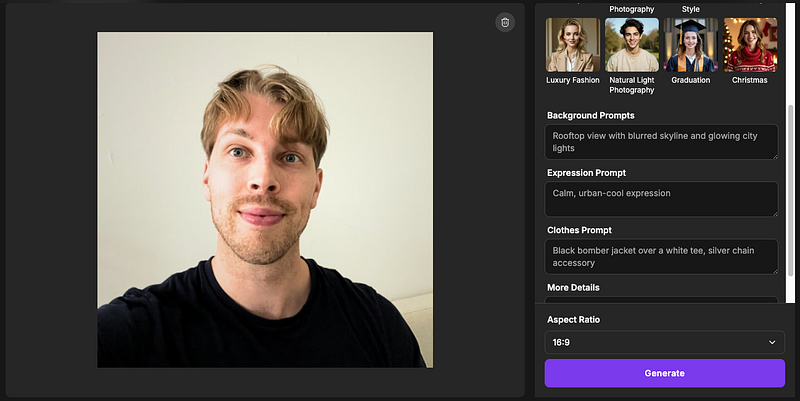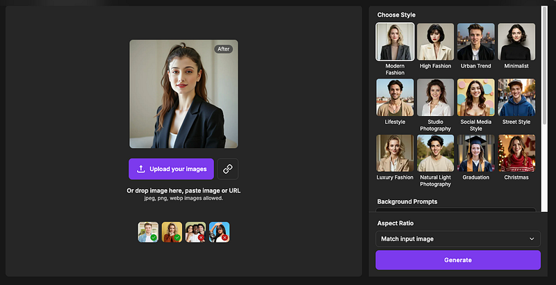 But just to be clear — this tool didn’t generate my face or create new images. It only swapped the background. So it’s not a true AI headshot generator.