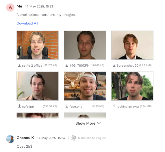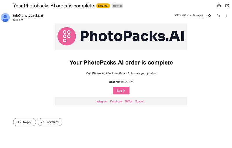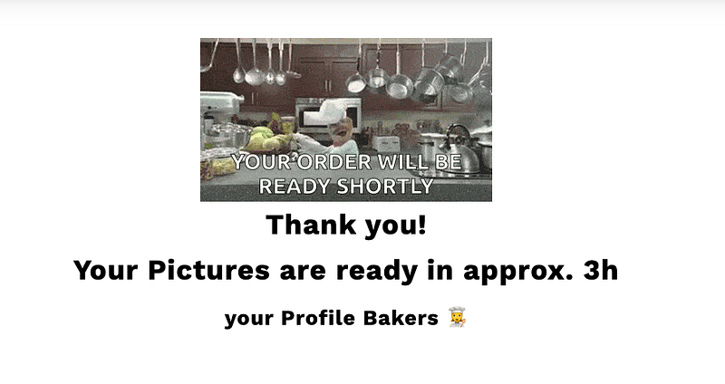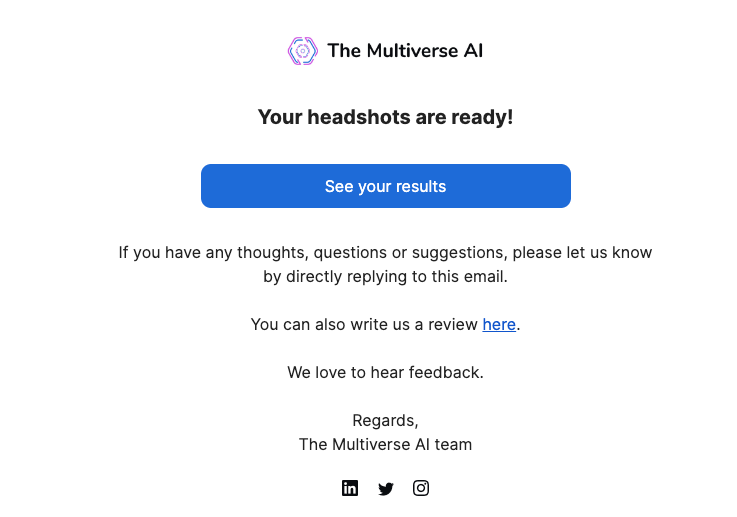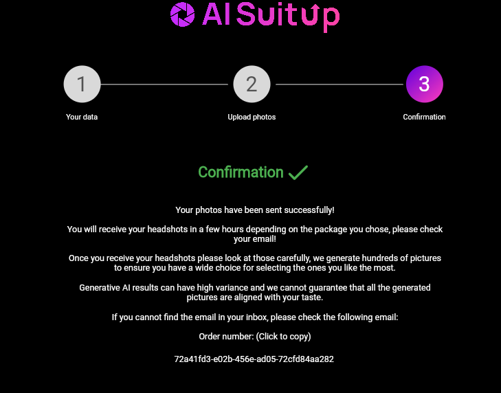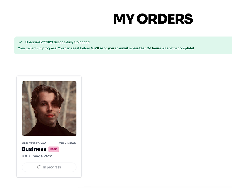 After you’ve sent your images, it takes about 30-90 minutes for the AI to create your pictures.