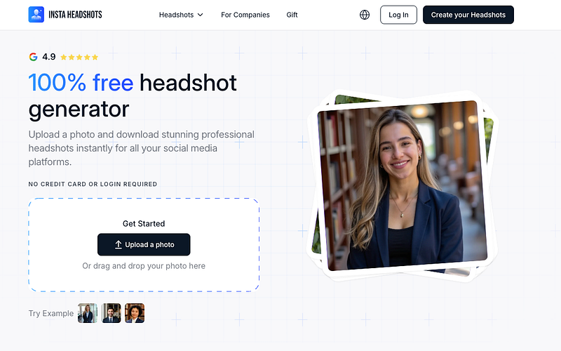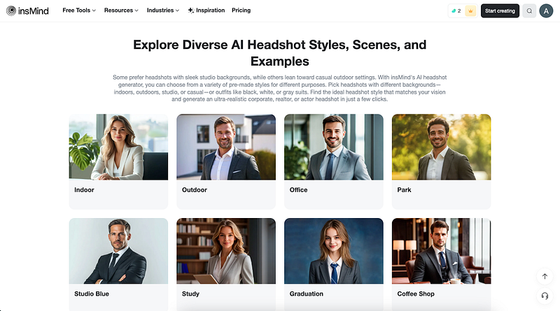 InsMind is a newer AI headshot generator that gives you five free AI headshots when you sign up.