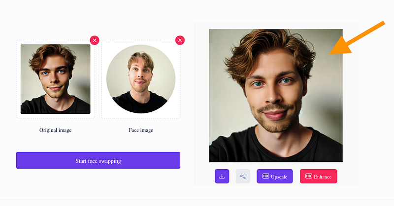 The tool will swap your face into the AI image, giving you a more personalized and realistic headshot.