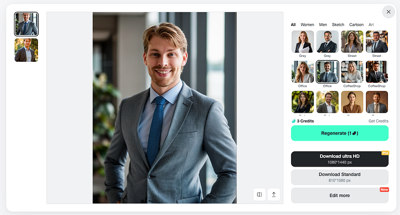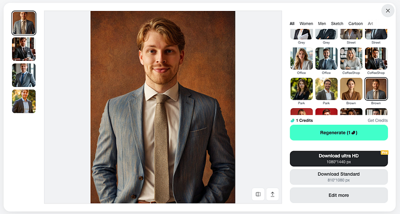 That said, one thing that did surprise me was how many editing options the tool offers. There’s a lot you can tweak, which isn’t common with free AI headshot generators.