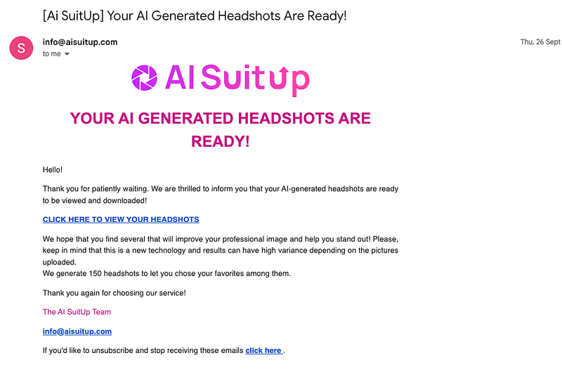 BetterPic is handy because they’ll send you an email once your headshots are ready.