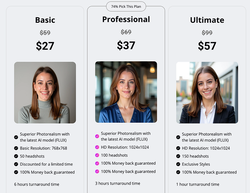 Here’s the deal: the best headshot models today rely on advanced AI systems and serious computing power. That’s why they cost money.