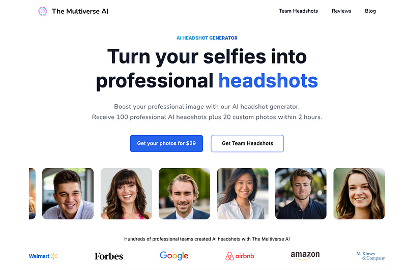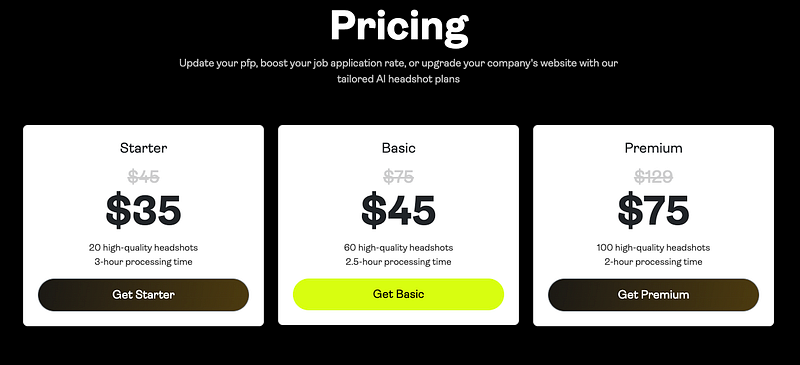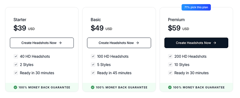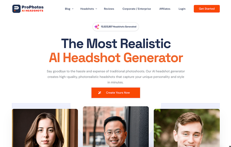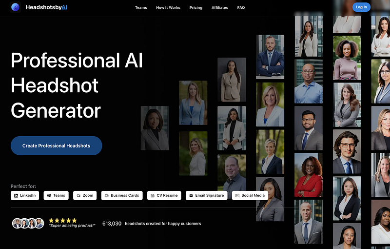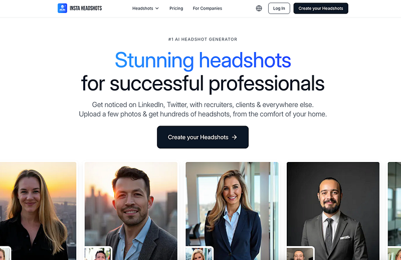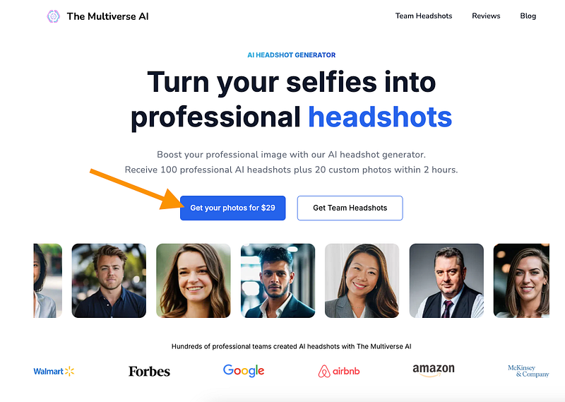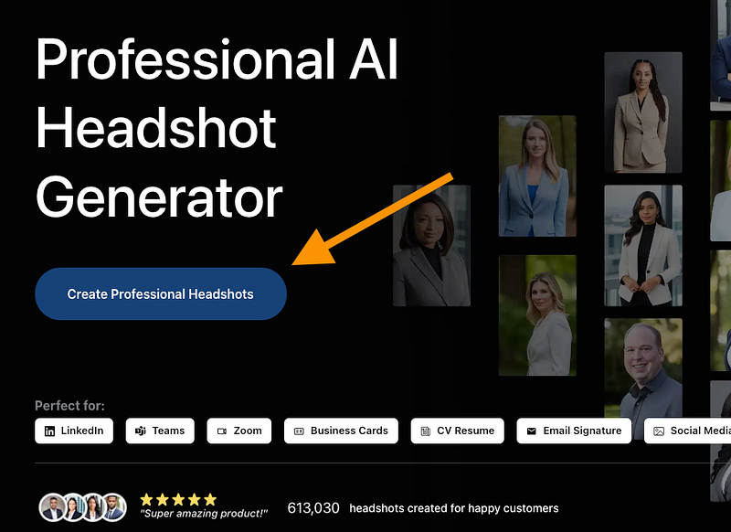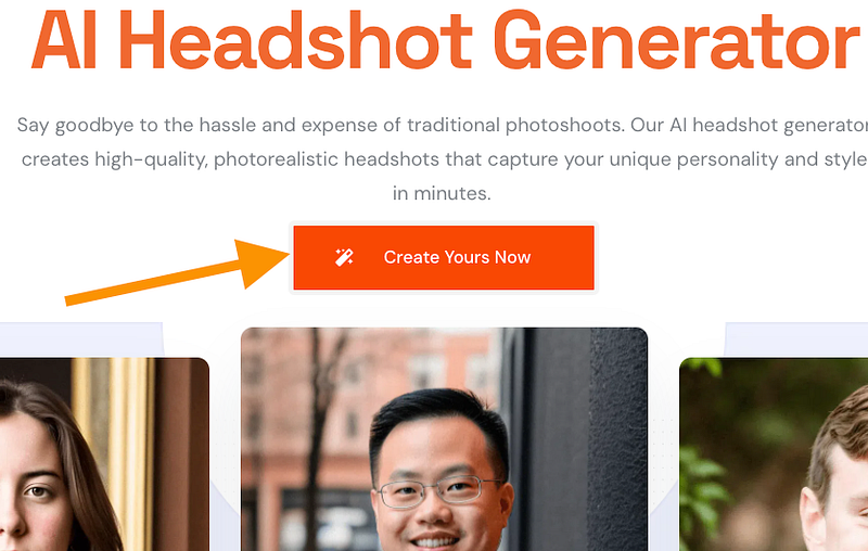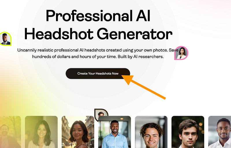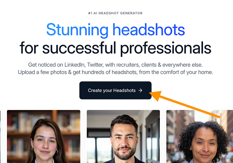 To make your own AI portraits, go to the site and click “Create Your Headshots Now.” The process is quick and straightforward—they handle the rest.