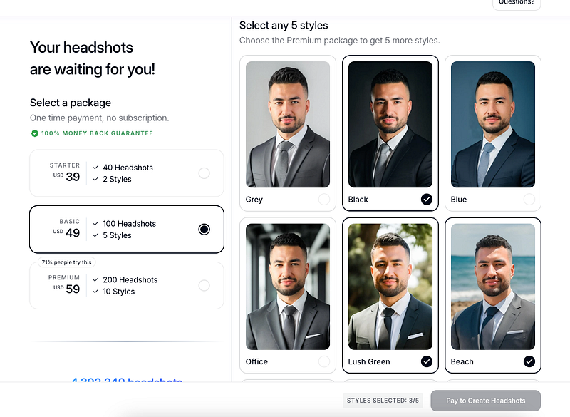 To make your own set, go to the site and click “Create Professional Headshots.”