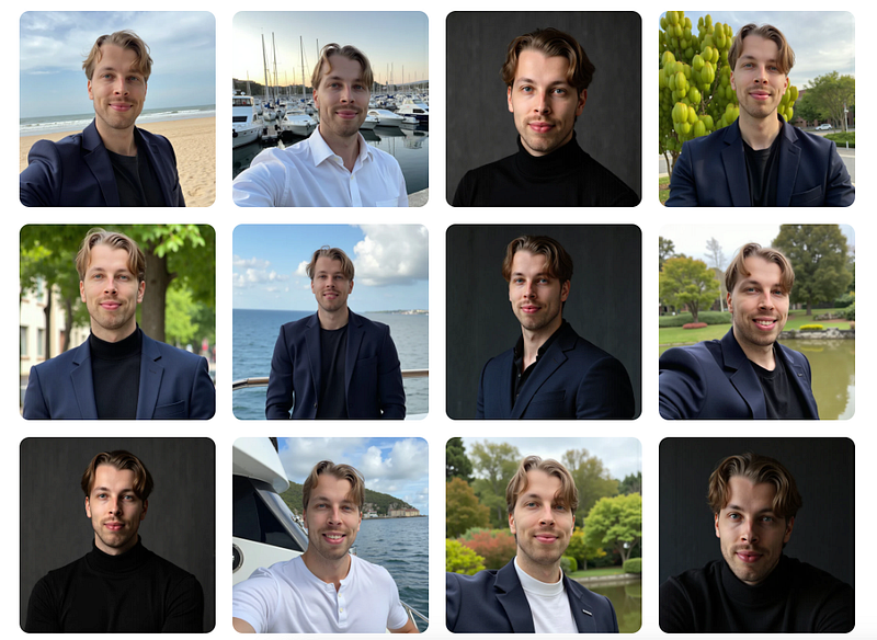 - Variation: You get multiple selfies in different settings, outfits, and lighting.