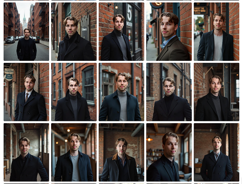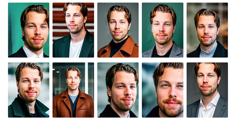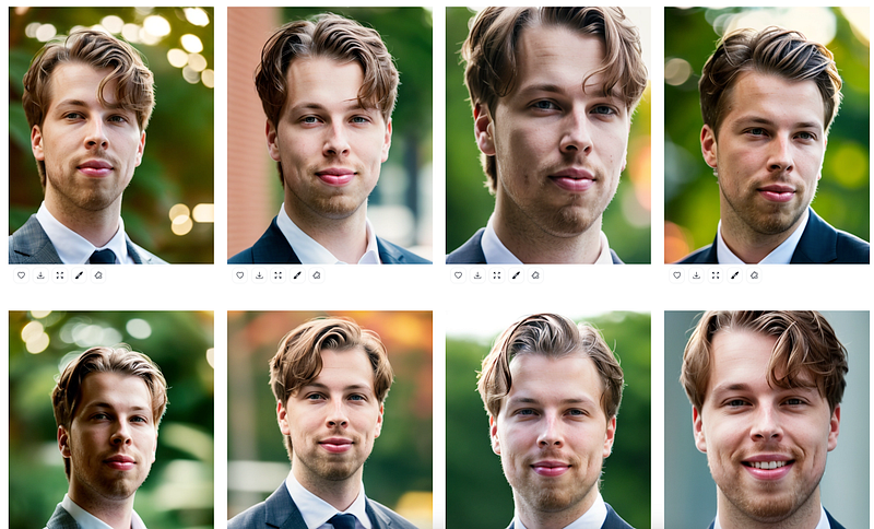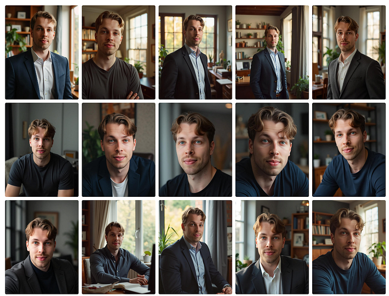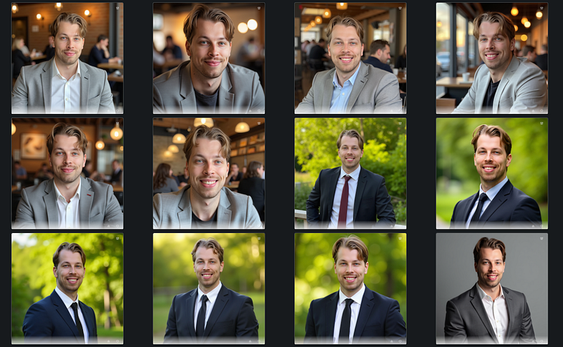 - Variability: Includes a wide range of styles, from close-up selfies to realistic headshots in a suit at an office.